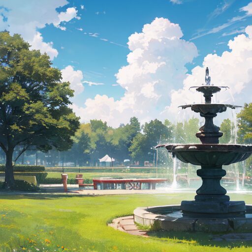 選択範囲変形の後に画像位置をずらしたくなったら、「移動ツール」を使うと該当するレイヤーの移動が可能です。上記の場合、噴水がよくわからない状態なので移動させました。