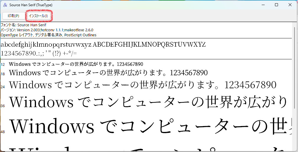 ダウンロードしたttcファイルをダブルクリックすると、ウィンドウが出てきますので「インストール」。これだけでフォントの導入は完了です。もっと簡単な方法があるかもですけど、まあ一例ってことで。